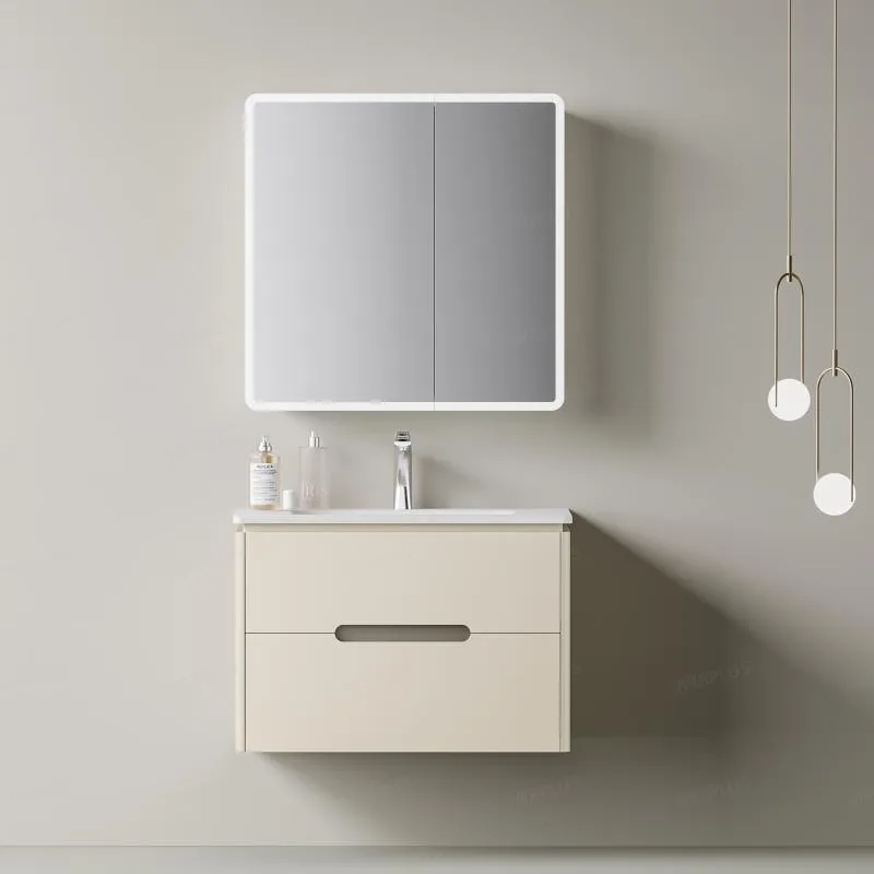 High End Modern Floating Solid Wood Vanity Set with LED Mirror Cabinet