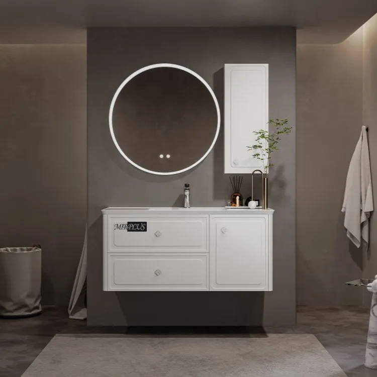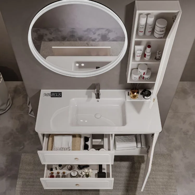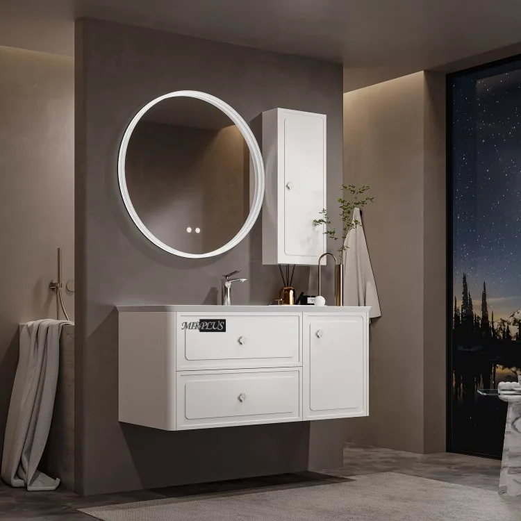 Mirplus White Modern Elegant Floating Bathroom Vanity with Lighted Mirror and Side Storage Cabinet